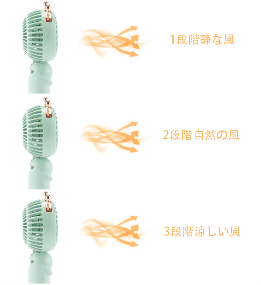 充電端子:Type-C(USB-C)/風力3段階調整/自立スタンド機能付き。