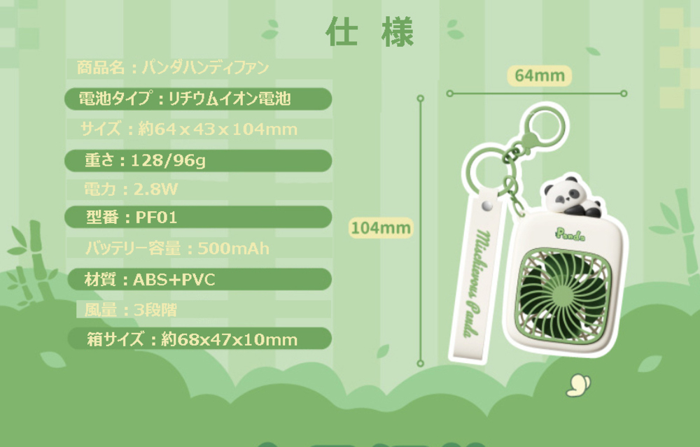 小さくて軽い、キーホルダー式のパンダハンディファン。