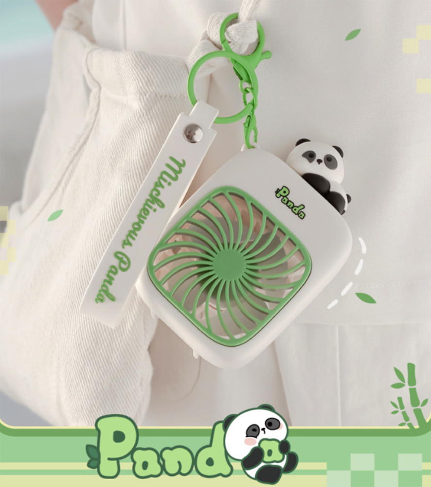 小さくて軽い、キーホルダー式のパンダハンディファン。